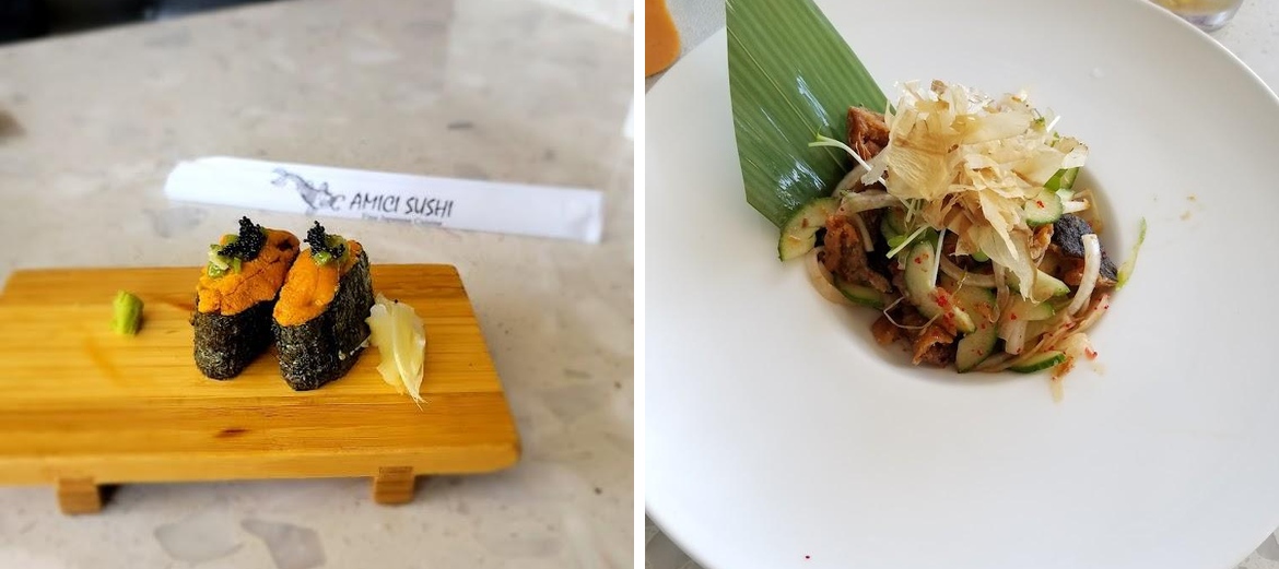 At Amici Sushi, the menu epitomizes traditional Japanese elegance with a modern twist. Each dish features carefully sourced, fresh ingredients that reflect our chef's dedication to authenticity and quality. Our sushi rolls range from classic California rolls made with real crab to innovative creations like the Butterfly and Louise rolls, blending traditional flavors with eclectic fusion notes.